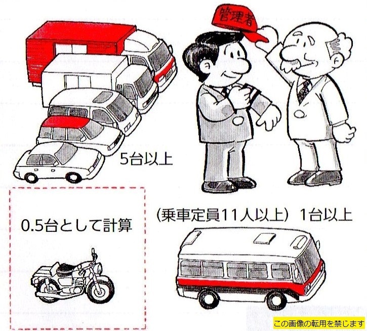 事業主は規定の台数の使用の本拠毎に安全運転管理者を選任する義務があります。選任しないと罰金(50万円以下)が科せられます。