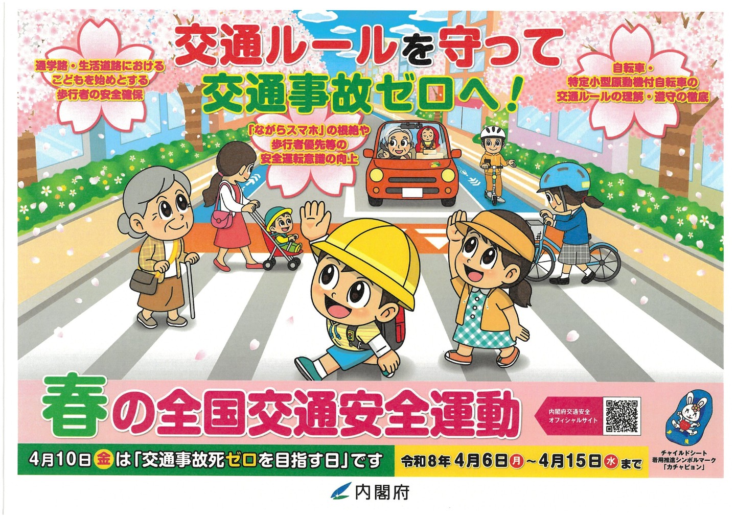 令和8年、春の全国交通安全運動に伴う「宮城県春の交通安全県民総ぐるみ運動」の実施要綱については、下のPDFをご覧になってください。